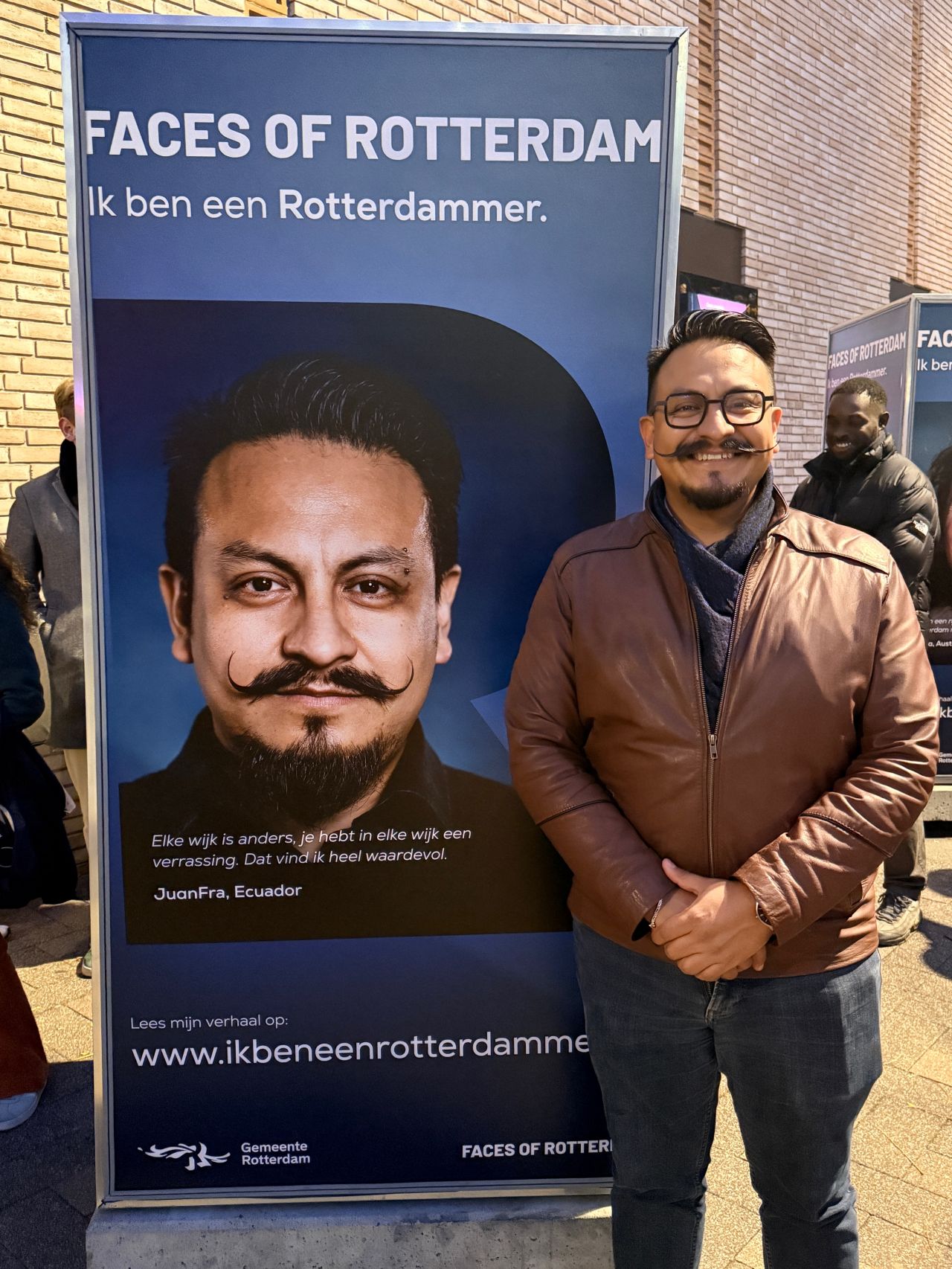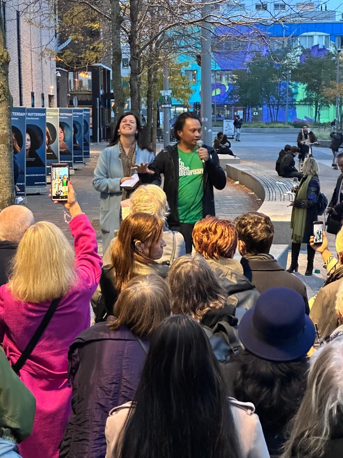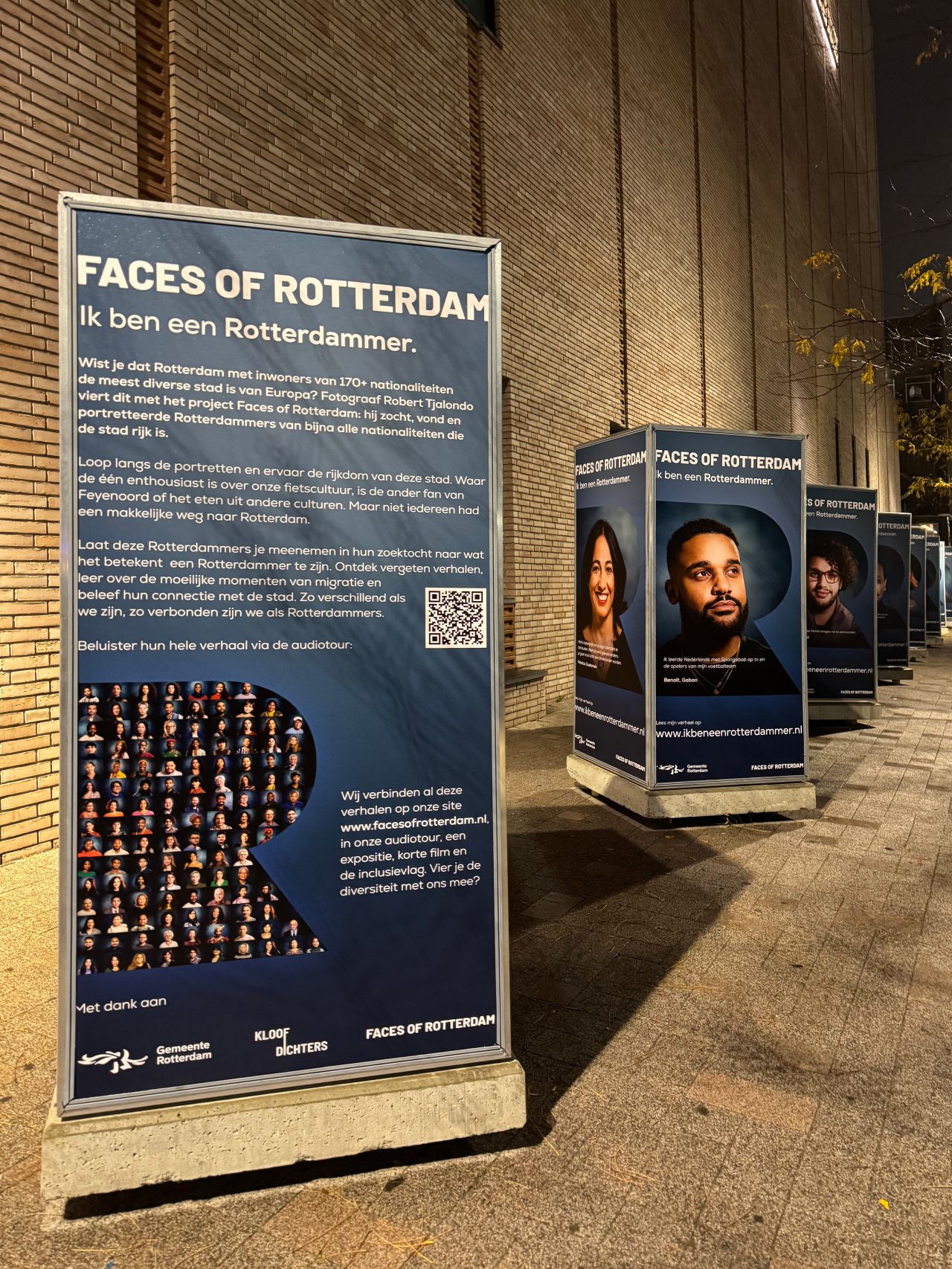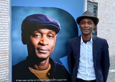 Een van de meest spraakmakende onderdelen van het programma vond buiten op het plein plaats: speeddaten met de geportretteerden. Tussen de 39 levensgrote portretten door kregen bezoekers de kans om in gesprek te gaan met de mensen van de foto’s. Het zorgde voor een prachtige dynamiek waarbij de quote van deelnemer Christos uit Cyprus direct voelbaar werd: “In Rotterdam zie je: deze mensen wónen hier.”