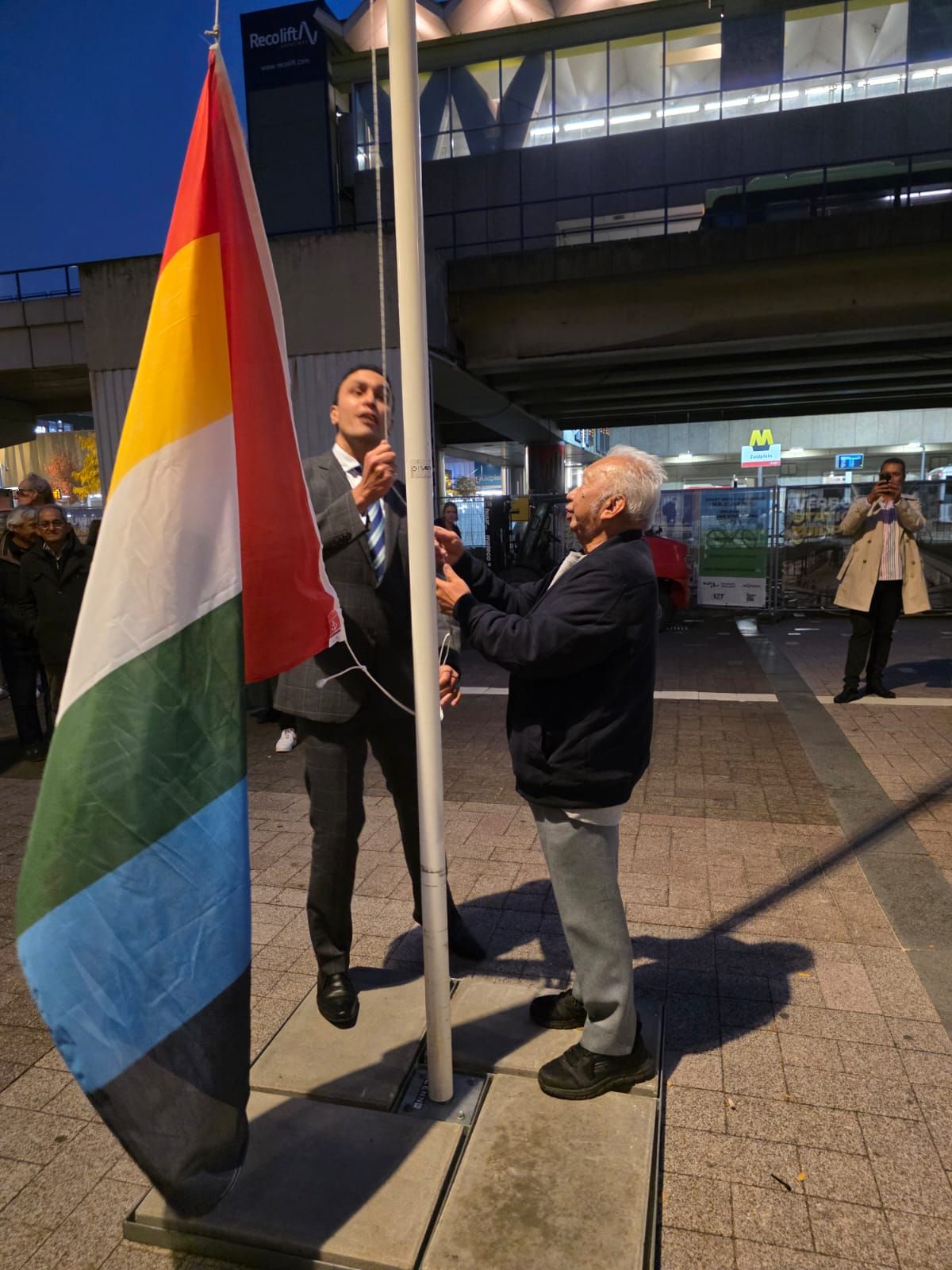 Ook de officiële handeling door wethouder Faouzi Achbar maakte diepe indruk. Hij hief de speciaal door Leendert Jacob ontworpen inclusievlag. Deze vlag symboliseert verbondenheid: met de kleuren van de Rotterdamse vlag in het hart kunnen alle vlaggen van de wereld worden gevormd.